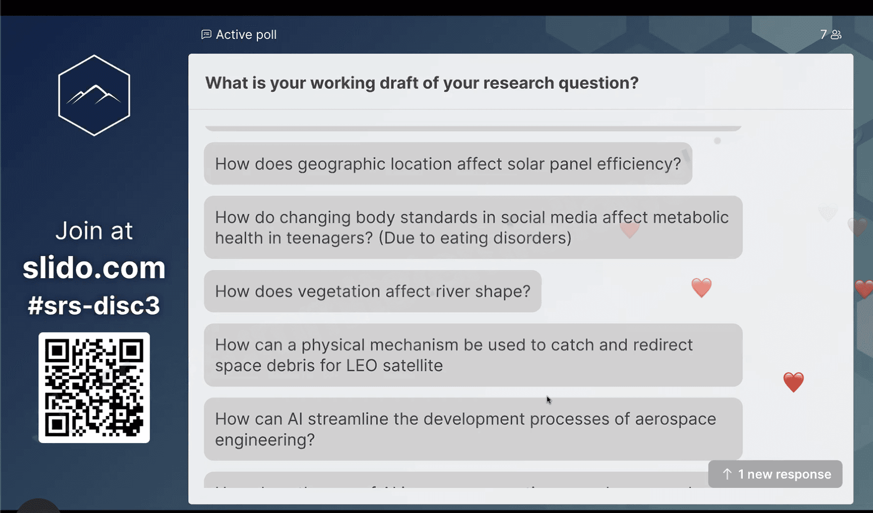 Summit Research Scholars (SRS) teaches students how to conduct rigorous research by combining core research methodology with technical skill development. Through the bootcamp, students learn to think analytically, design research studies, and apply data-driven approaches to real-world problems. By the end of the program, students gain the tools to pursue research in fields ranging from biology and engineering to computer science, mathematics, and beyond.